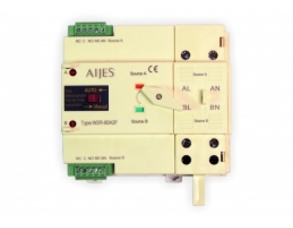 - Mô tả ATS 80A với mã W2R là bộ chuyển đổi nguồn đôi tự động với tần số AC 50Hz hoặc 60Hz, Điện áp làm việc định mức là hơn 400V, và chịu dòng tải lên đến 80A của hệ thống 02 nguồn chính và phụ, tự động chuyển khi mất nguồn ưu tiên và ngược lại, có tiếp điểm gọi máy phát từ xa ( remote start ) ,ATS 80A của hãng AIJES có cấu trúc bề ngoài nhỏ gọn, chuyển đổi đáng tin cậy, độ bền cao, lắp đặt, bảo trì dễ dàng và được sử dụng rộng rãi cho nhiều công trình khác nhau.