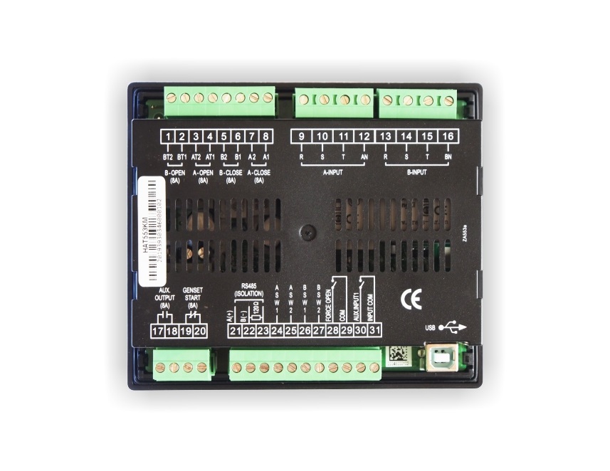 - Mô tả Bộ điều khiển Smartgen HAT553KM là thiết bị điều khiển ATS (Automatic Transfer Switch) thông minh, chuyên dụng cho hệ thống chuyển nguồn tự động giữa điện lưới và máy phát điện. Phiên bản HAT553KM (Bđk đa năng) được thiết kế với công tắc chuyển mạch hai trạng thái, cho phép vận hành linh hoạt giữa hai nguồn điện mà vẫn đảm bảo an toàn và ổn định. Thiết bị tích hợp màn hình LCD hiển thị rõ ràng, hỗ trợ giao tiếp kỹ thuật số Modbus-RTU, giúp giám sát, điều khiển và chẩn đoán từ xa dễ dàng. Với khả năng tương thích cao cùng độ bền vượt trội, Smartgen HAT553KM là lựa chọn tối ưu cho các tủ ATS, tủ điều khiển máy phát điện và hệ thống điện công nghiệp.