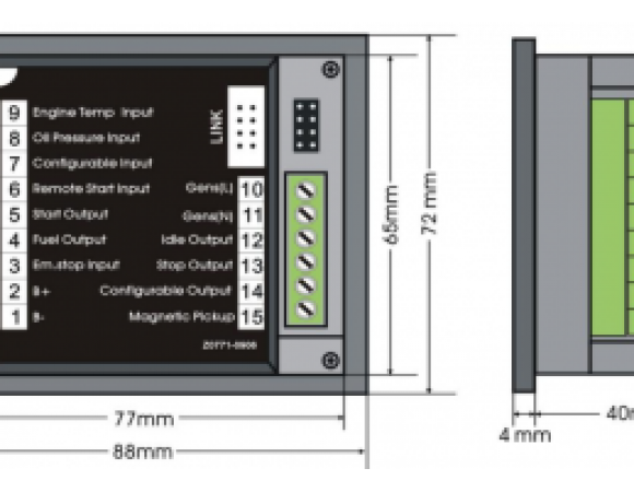 - Mô tả Module HGM1770 là mo-dun tự động điều khiển động cơ. Nó cho phép lựa chọn 3 trạng thái làm việc, Tự Động ( AUTO ), Tay ( MAN ), Tắt Máy ( STOP ), hoặc tín hiệu khởi động từ xa, nó có thể phát hiện lỗi (áp lực nhớt thấp, nhiệt độ nước cao, hệ thống báo dừng khẩn cấp, quá tốc độ ) khi đó nó sẽ tự động ngắt rơle nhiên liệu ( FUEL ) và xuất tín hiệu Tắt Máy ( STOP ). màn hình LED hiển thị lỗi, có thể cung cấp thông tin báo động thực tế và hiệu quả.
